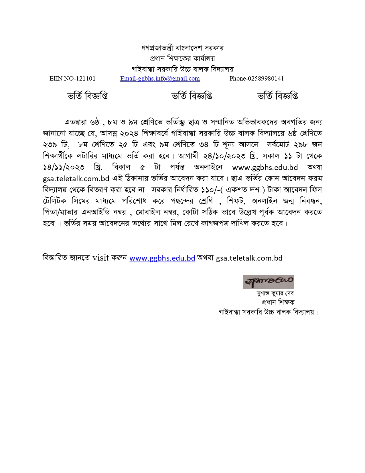 ভর্তি বিজ্ঞপ্তি-২০২৪