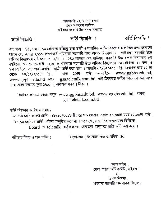সন্মানিত অভিভাবক, আবেদনের শেষ তারিখ পরিবর্তন হয়েছে। #### ভর্তি ইচ্ছুক শিক্ষার্থীদের আবেদন ফরম পুরণের শেষ তারিখ ১৩-১২-২০১৮।